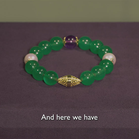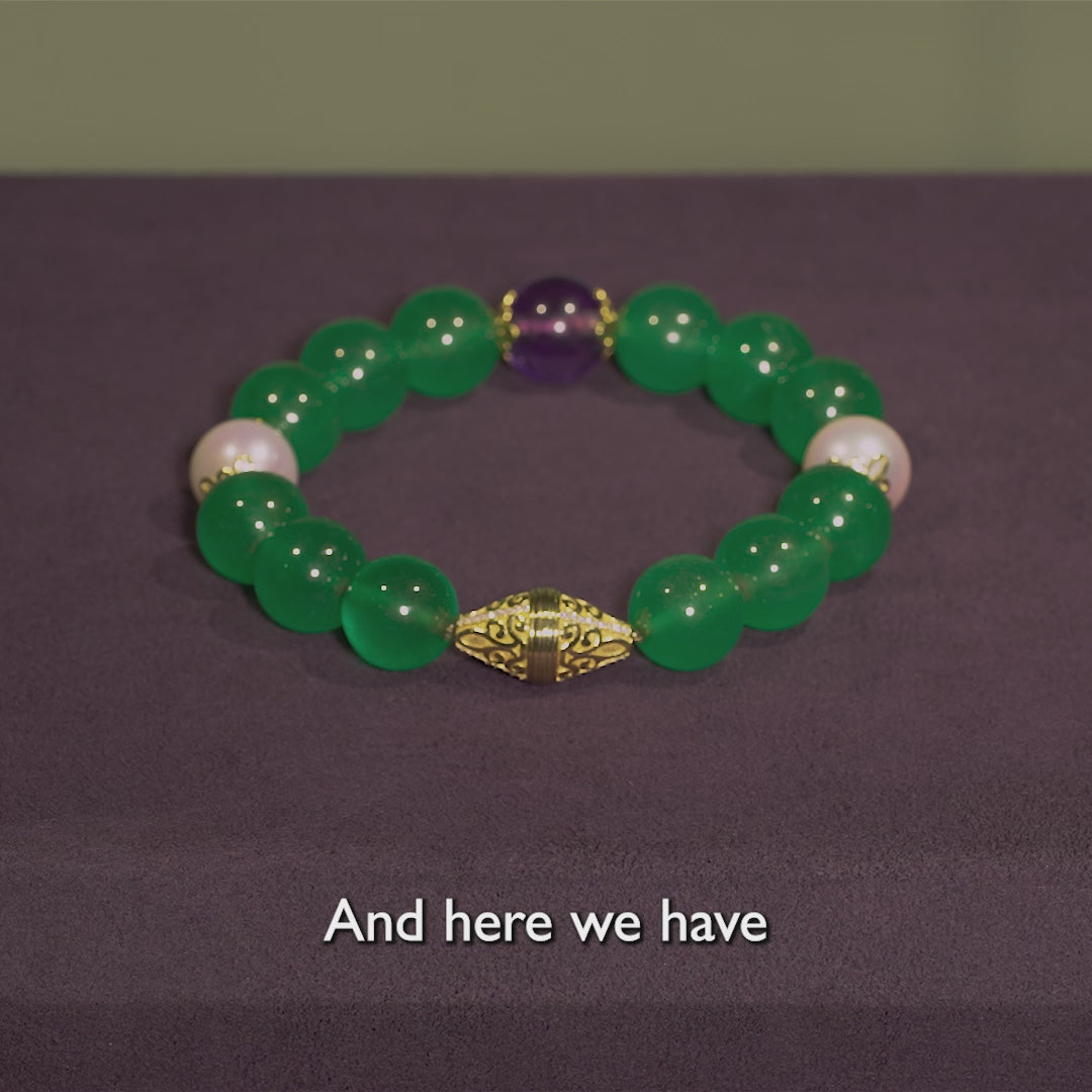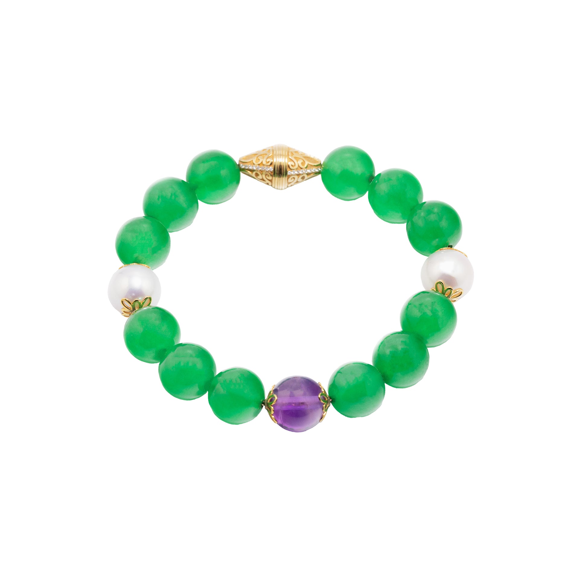 Imperial Jadeite, Arabian Gulf Pearl & Amethyst Bracelet with 18k Gold & Diamonds